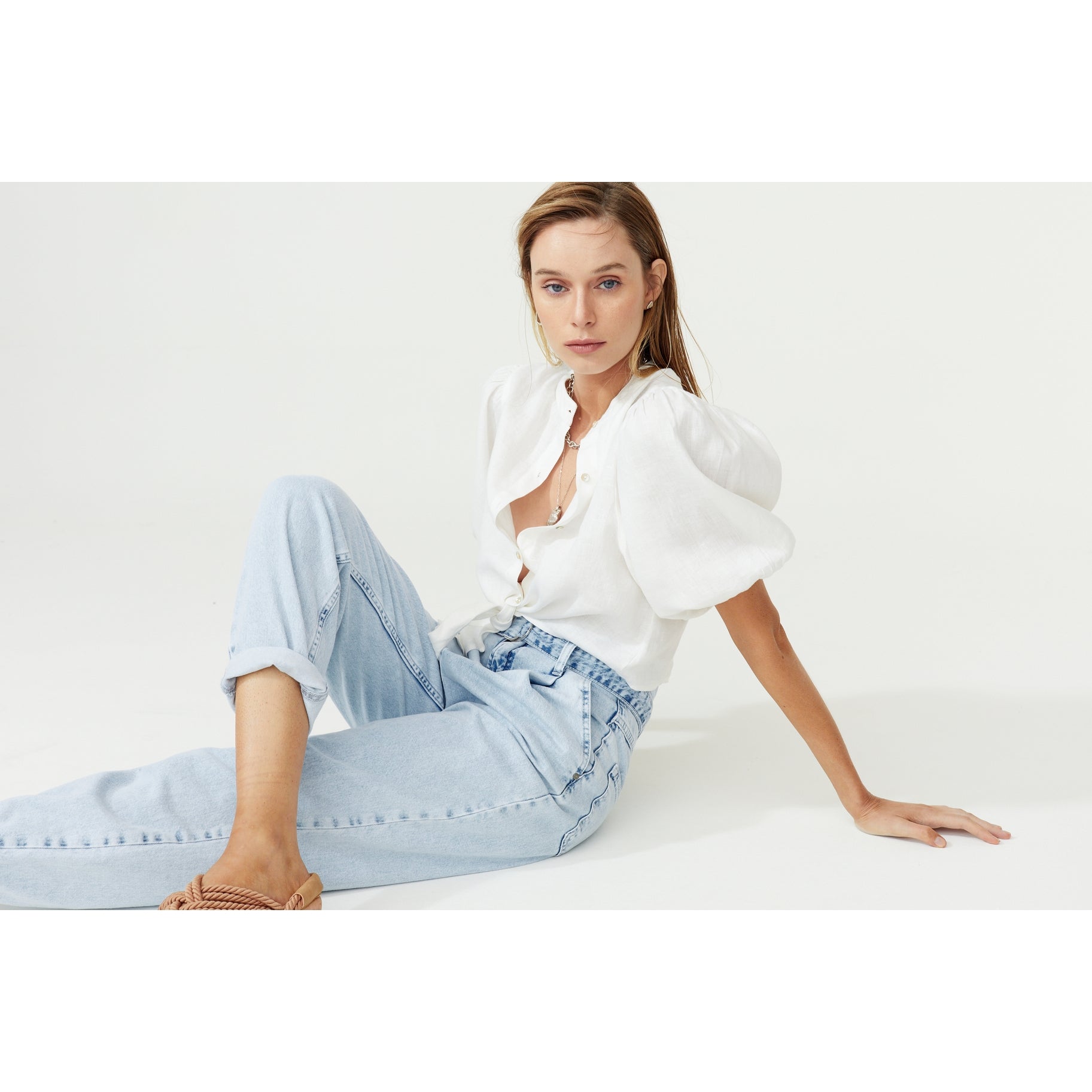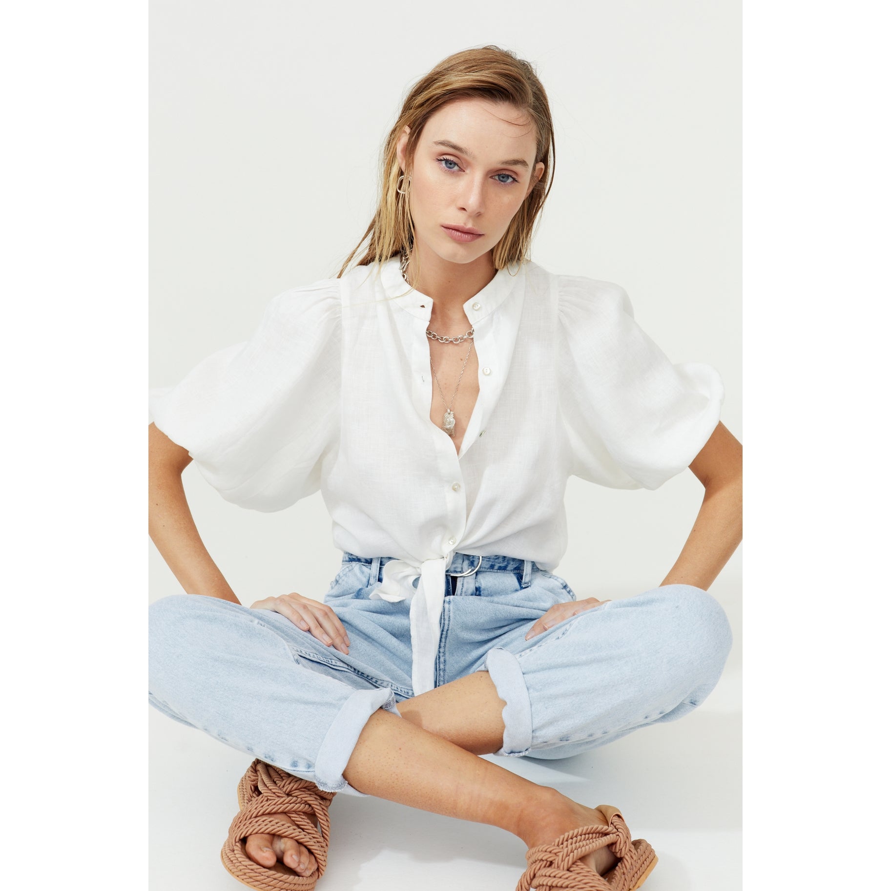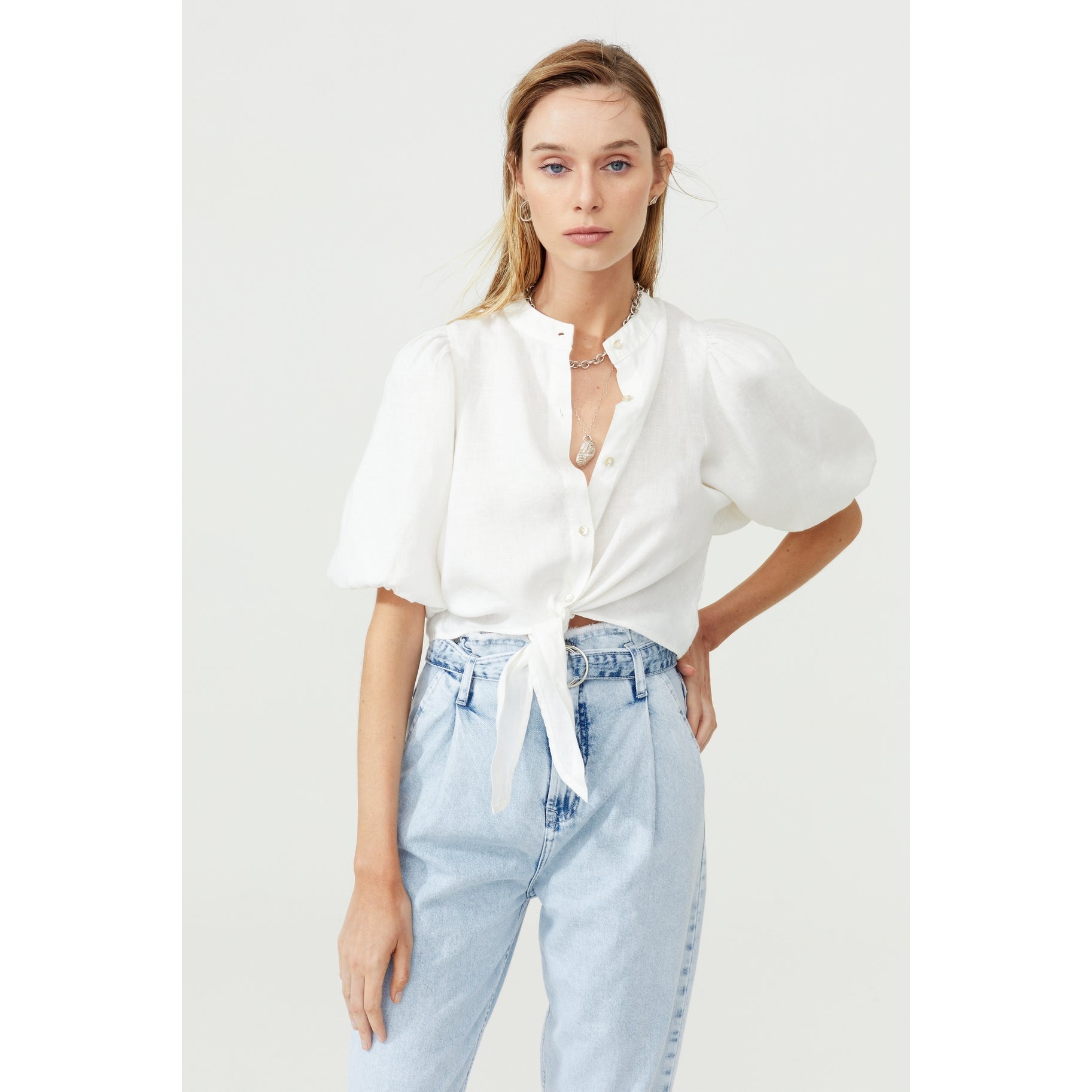 Linen Puffed Sleeve Cropped Bubble Shirt